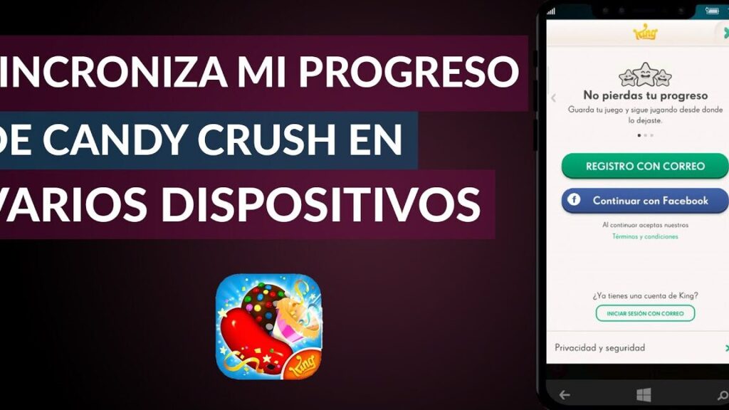 Puedes crear una cuenta de King para sincronizar tu progreso. Toca el ícono de ajustes en Candy Crush Saga, selecciona "Cuenta" y luego "Crear cuenta de King". Ingresa tu dirección de correo electrónico y crea una contraseña.