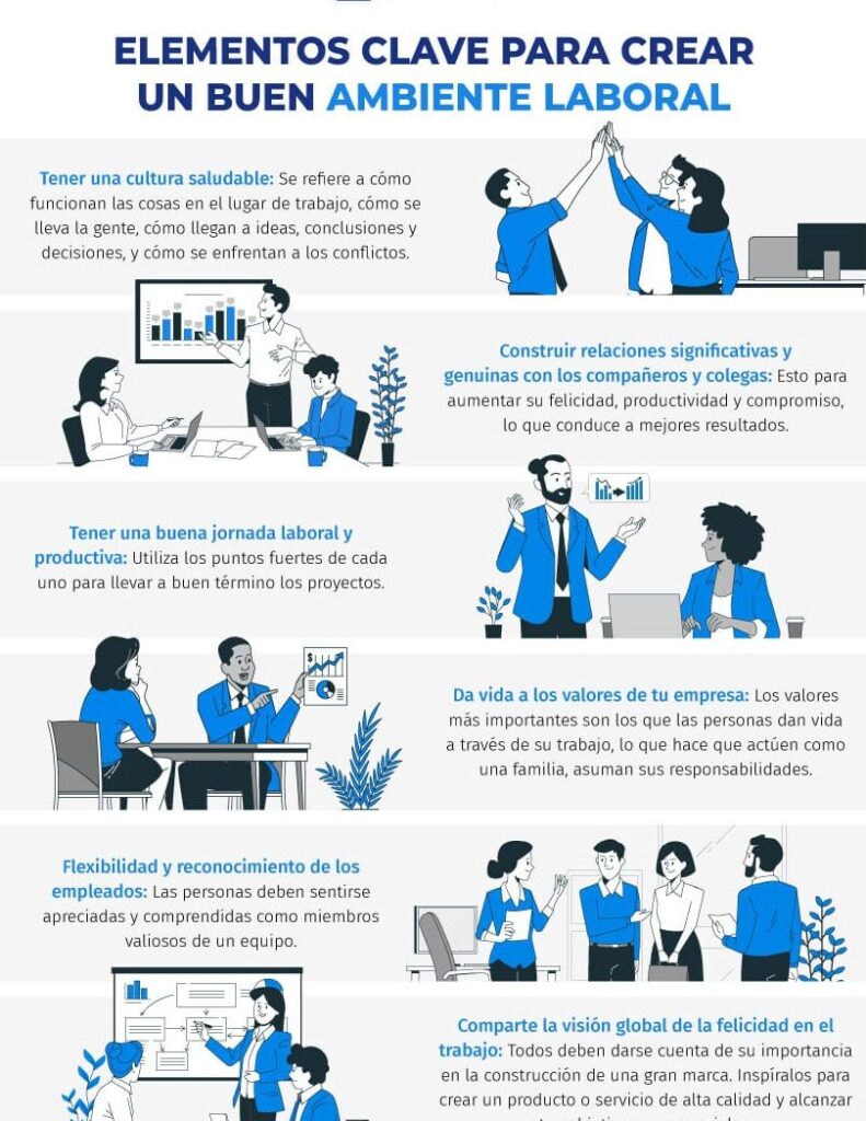 Crear un ambiente de trabajo positivo implica considerar varios factores: